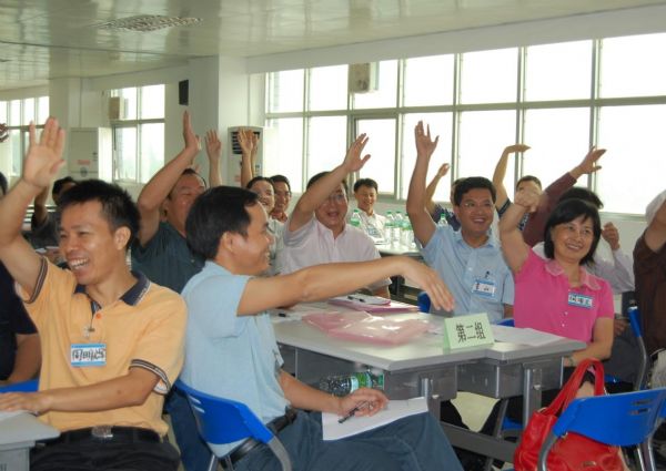 培训班10月29日开班,共有35名学员参训,由台湾资深培训师潘良吉先生授课。培训内容富厚多彩,形式多样,不但有理论授课、经验交流和示范案例研讨,更有身临其境的一分钟、三分钟和五分钟的拭魅战演练,让学员领略了企业培训师的风范,抵达了加速公司内部师资和“四支人才步队”建设程序的目的。