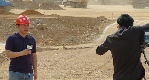 为更好的宣传隆百高速公路旱季施工热火朝天的施工厂景,4月25、26日,中央电视台采访人员来到隆百12、13标,将镜头聚焦火热的施工现场。