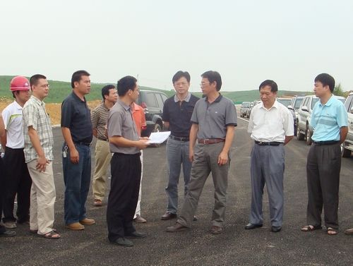 粱毅副厅长(右三)一行现场探讨四塘互通施工问题