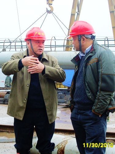 以上图为郑皆连院士和项目经理韩玉深入探讨工程建设