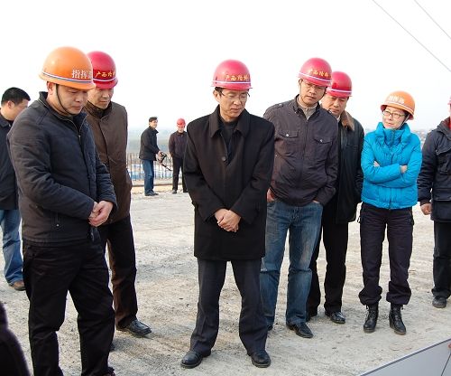2月12日下午,绍兴市委书记张金如一行莅临曹娥江大桥视察指导事情,并听取了大桥指挥部和项目部对大桥建设情况的汇报。