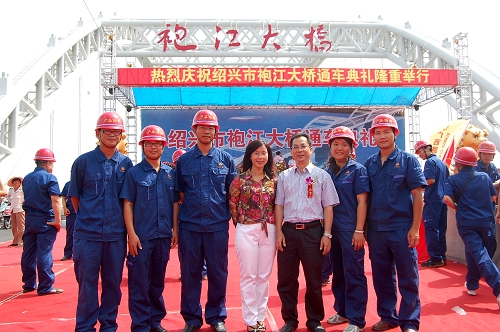 通车仪式当天,许多市民早早来到袍江大桥期待,袍江大桥全体建设人员精神抖擞,衣着整齐的工装,高举广西z6com人生就是博的旗帜,各人脸上都洋溢着激动和自豪,上午9时18分,绍兴市袍江大桥通车仪式在众人的期待中隆重举行,仪式由市委常委、常务副市长陈长兴主持,绍兴市袍江新区党工委书记、管委会主任寿炳尧与市委副书记、市长钱建民先后致辞,总公司党委书记曹文海作为施工方代表,做了激情洋溢的讲话,最后市委书记张金如宣布袍江大桥正式通车。