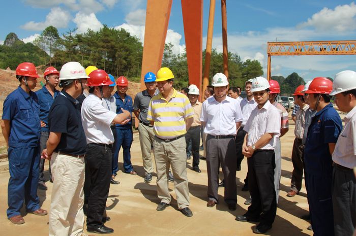 旅行完项目经理部驻地,潘厅长对深入施工现场意犹未尽,要求再去视察一个施工点。在旧州互通,针对项目提出保存的征地难问题。潘厅长把靖西县政府领导叫到一旁了解具体情况,同时作了重要指示,潘厅长强调,地方政府应尽快解决施工单位征迁难题,并且要大力支持靖那高速公路建设,效劳靖那高速公路建设。