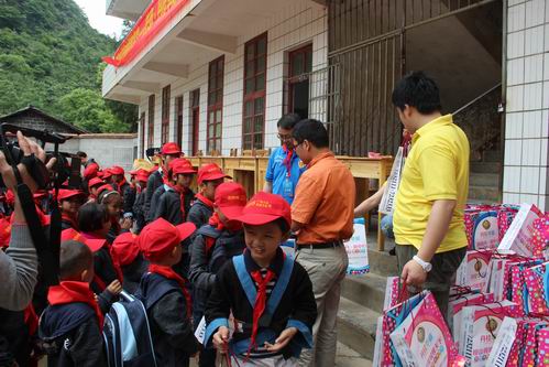 • 518 ,公司丹桂华庭项目携手越野e族广西大队、香港大队和青岛胡姬花公司等 ,来自区内外70多台越野车约300多名社会各界爱心人士联合开展2013南丹吧哈小学爱心助学运动 ,向南丹县八圩镇瑶族乡吧哈小学赠送了一批图书、篮球架、兵乓球桌、学生床等学习、生活用品。