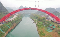 新圩连接线红水河特大桥首次拱肋管内混凝土灌注顺利完成