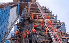 天峨龙滩特大桥外包混凝土顶板环首次浇筑顺利完成