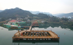 巴羌高速要害控制性工程岩滩水库特大桥完成11#主墩承台钢吊箱下放