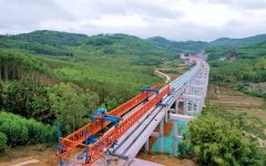 武忻1-2分部塘村2号高架大桥左幅桥梁架通