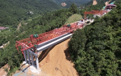 上峒路四分部首片预制梁顺利架设