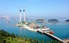 龙门大桥东锚碇锚体首层浇筑全部完成