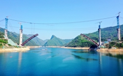 天峨龙滩特大桥拱肋节段吊装施工过半
